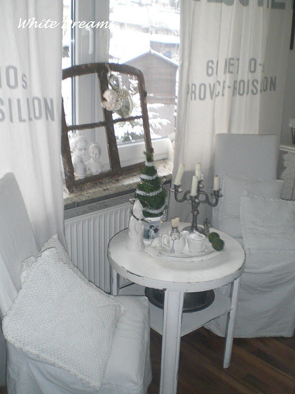 Übrigens: bei Dir ist alles immer so romantisch dekoriert - warum hängst Du nicht einfach ein paar schöne Spitzenbänder an das Regal im kleinen Flur - oder ein schönes Hemdchen - ich bin mir sicher, das macht das ganze gleich viel "weicher".